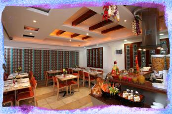 Breakfast buffet serving continental and Indian cuisines